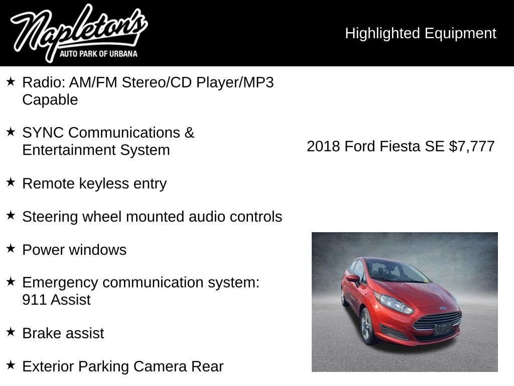 With its sleek styling, impressive efficiency, and thoughtful features, this 2018 Ford Fiesta SE is the perfect choice for the savvy driver who demands both style and substance. Experience the difference for yourself â" schedule a test drive today and discover the joy of driving this exceptional compact car.