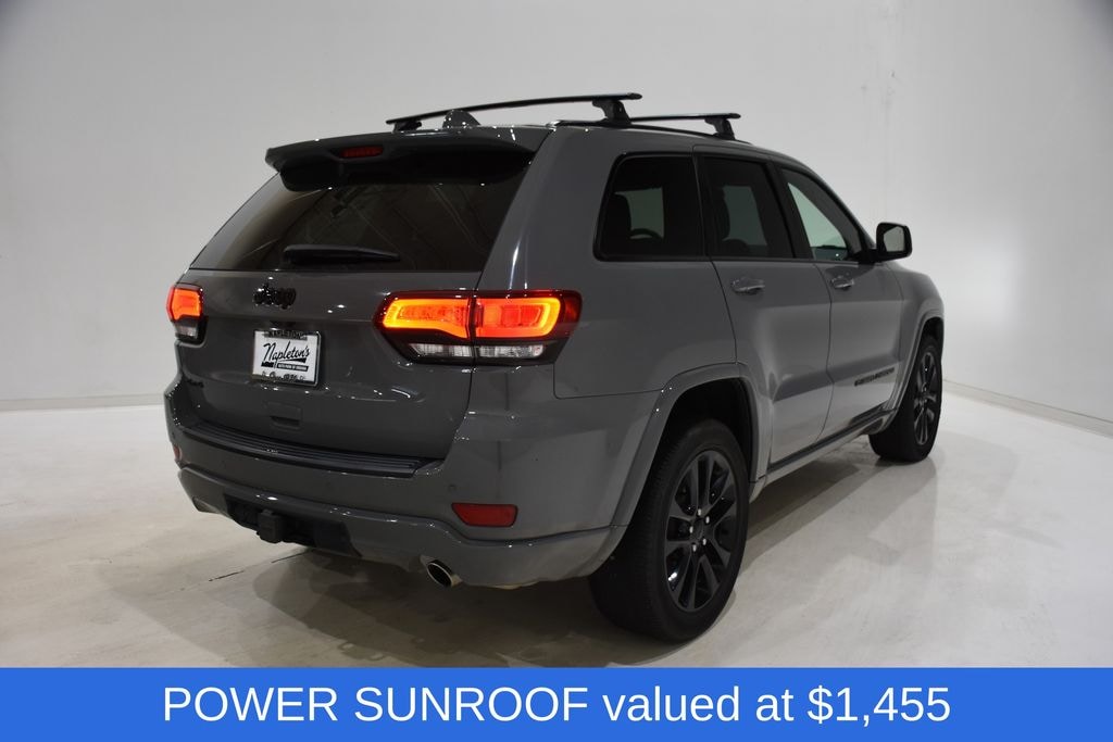 Designed to tackle any adventure, this Grand Cherokee features the Selec-Terrain System, Hill Descent Control, and a Class IV Receiver Hitch, making it the perfect companion for your towing and off-road needs. The Altitude Appearance Package adds a touch of style with its Gloss Black accents and 20-inch Gloss Black Aluminum wheels.