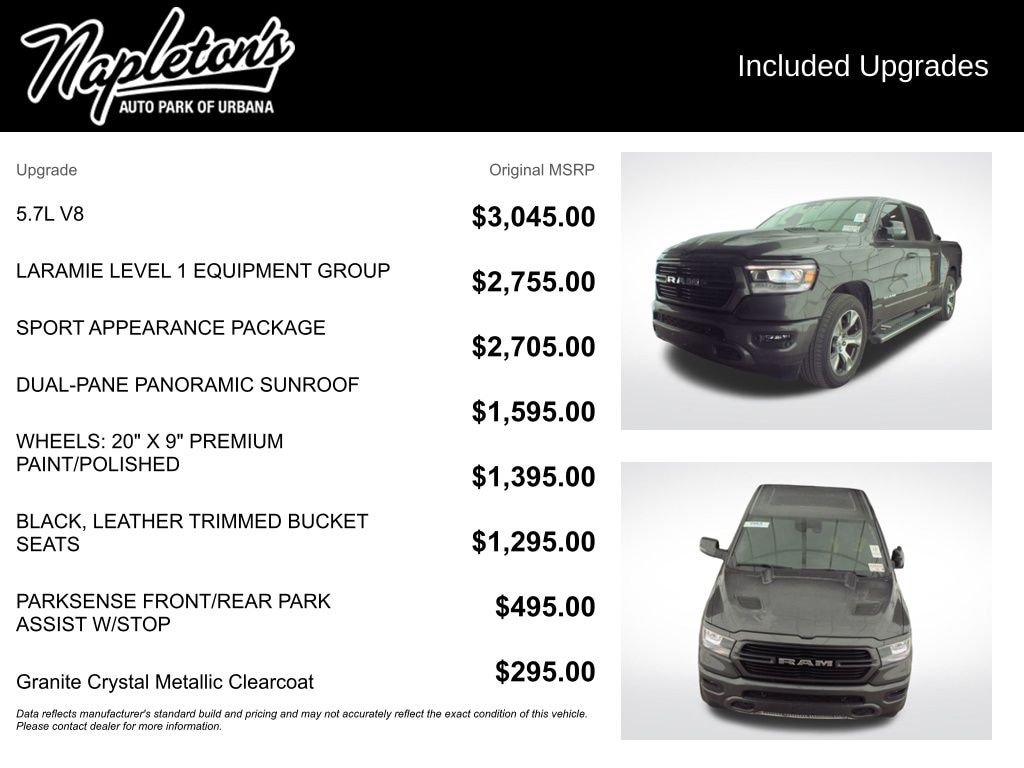 This Ram 1500 Laramie is more than just a work truck - it's a versatile companion that seamlessly blends power, technology, and premium comfort. The Sport Appearance Package adds a touch of style with its body-colored accents and unique decals, while the Dual-Pane Panoramic Sunroof floods the cabin with natural light, creating an airy and open atmosphere.